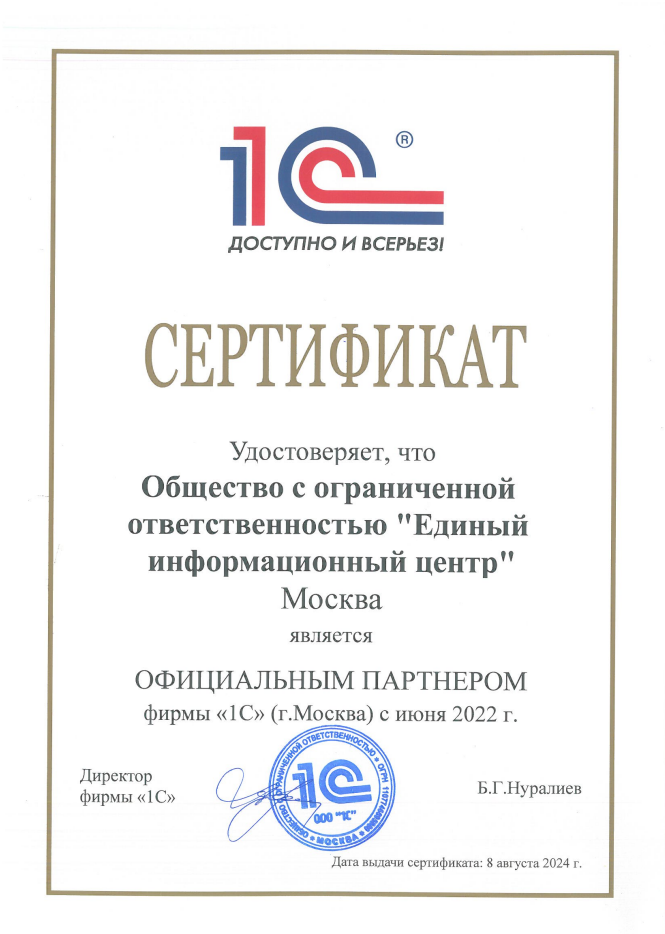 ООО "ЕИЦ" Является официальным партнером фирмы 1С.